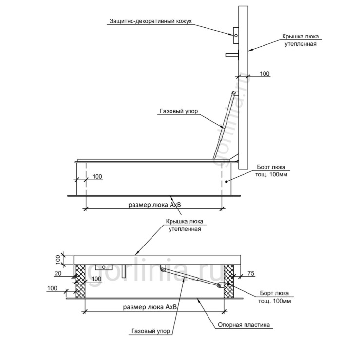 - внутренняя ручка для толкания и притягивания дверцы со стороны лестницы.