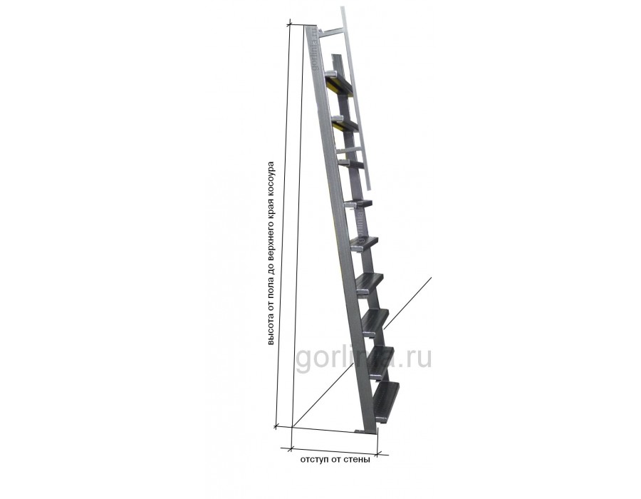 Благодаря продуманной конструкции, вы можете установить и закрепить лестницу практически где угодно: сделать лаз в погреб, установить в гараже, сделать удобный спуск в подвал и т.п. Предусмотренные стандартные крепления на торцах косоуров помогут закрепить стойки к потолку, проёму люка, стене или к полу, по вашему желанию. Если вы выбрали металлическое исполнение, купите в нашем магазине, выбрав подходящий чертеж.