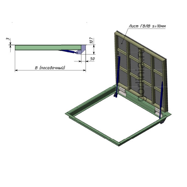 - Съемная ручка под четырехгранную личинку замка.
